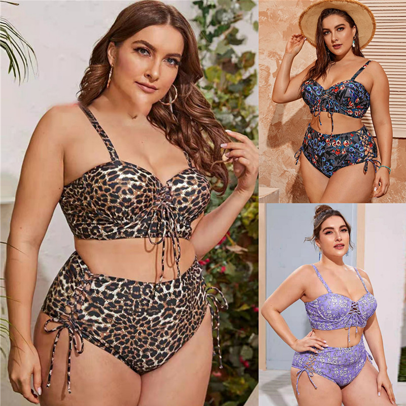 Fashion Split Swimsuit Women's Sexy Leopard Print Hollow Bandage Bikini